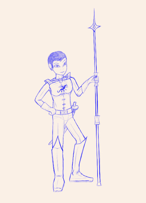 This time the head was the challenge. I like short hair, I even like bald heads, but they are hard to paint. With hair you always can cheat and hide badly drawn head shapes, with no hair no cheating, it’s as easy (or hard) as this. So, it was a special drawing exercise and I woulkd like to repeat it more often (if the character allows it).