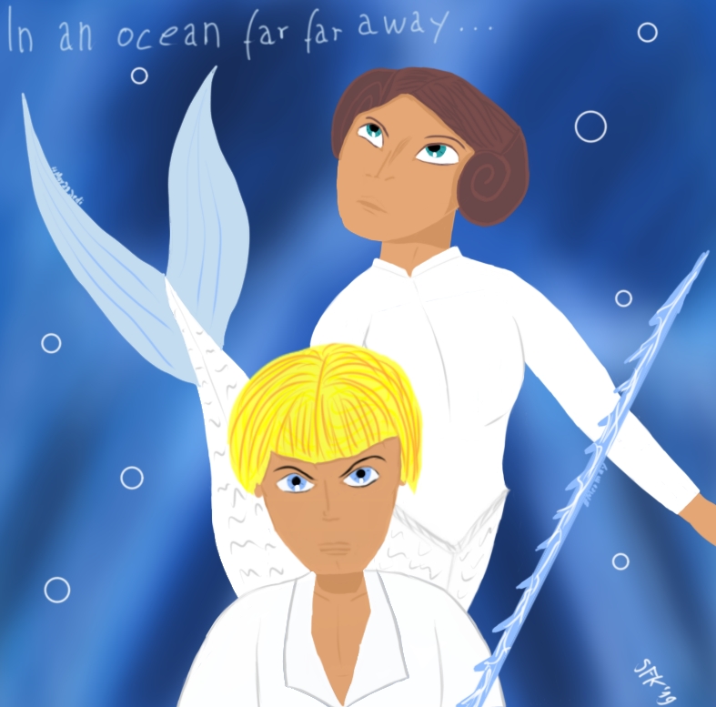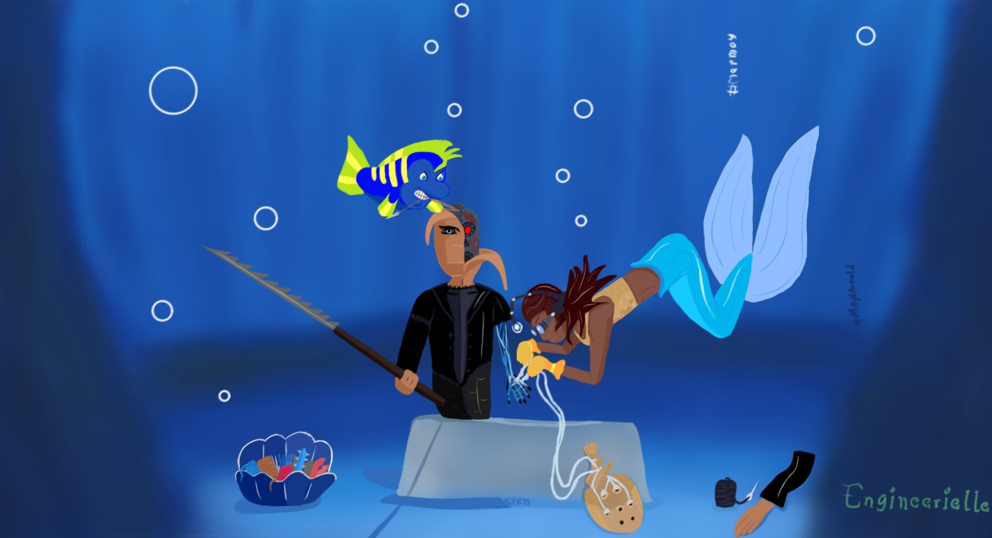 And this again was a redraw of an earlier painting, a Mermay entry from 2019. Engineeriel (but the robot too) underwent a slight design change in the meantime, though: