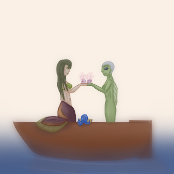 By coincidence, I noticed that one of the prompts was the prompt „Zodiac“. It was an even bigger coincidence that I actually planned a mermaid OC for my ZodiOC piece „Gemini“ (as mentioned before, most OCs are already set).