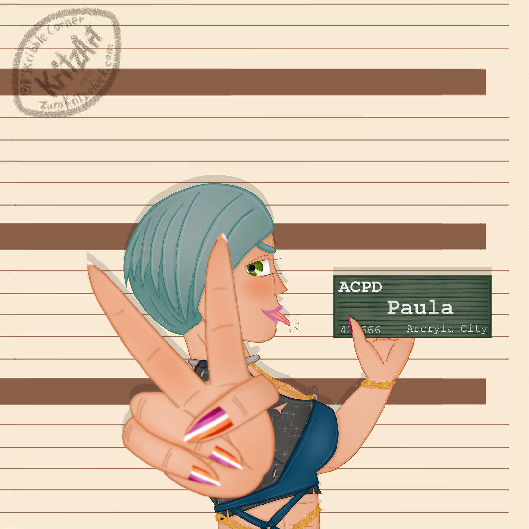 Some time ago somebody joked around about drawing our Arcryla City OCs in „hot“ poses. Additionally, I thought of painting Crissy at work for some time. So I combined them. It was quite an exercice in anatomy and it took me right out of my comfort zone.