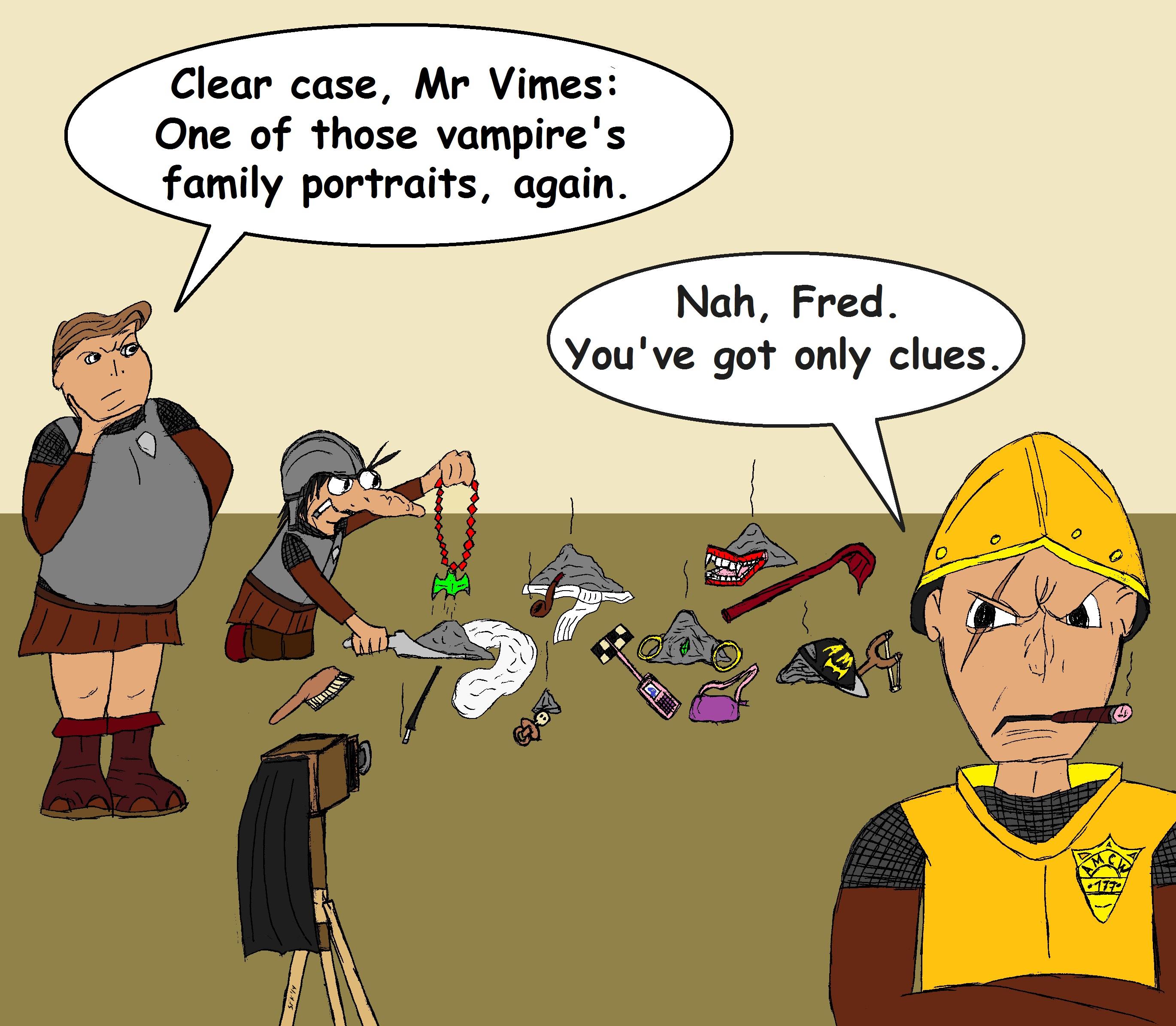 Ein paar sechs Jahre alte Cartoons zum Thema „Scheibenwelt“ (Terry Pratchett) habe ich ebenfalls noch in den Tiefen meiner Festplatte gefunden. Ursprünglich habe ich sie für ein englischsprachiges Discworld-Forum erstellt, woraus sich die englische Sprache erklärt. Kenntnisse der Scheibenwelt-Bücher sind zum Verständnis natürlich vorausgesetzt.